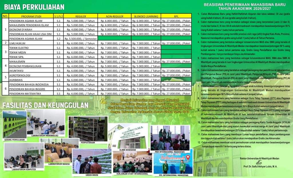 Penerimaan Mahasiswa Baru Universitas Al Washliyah Medan Tahun Akademik 2026/2027